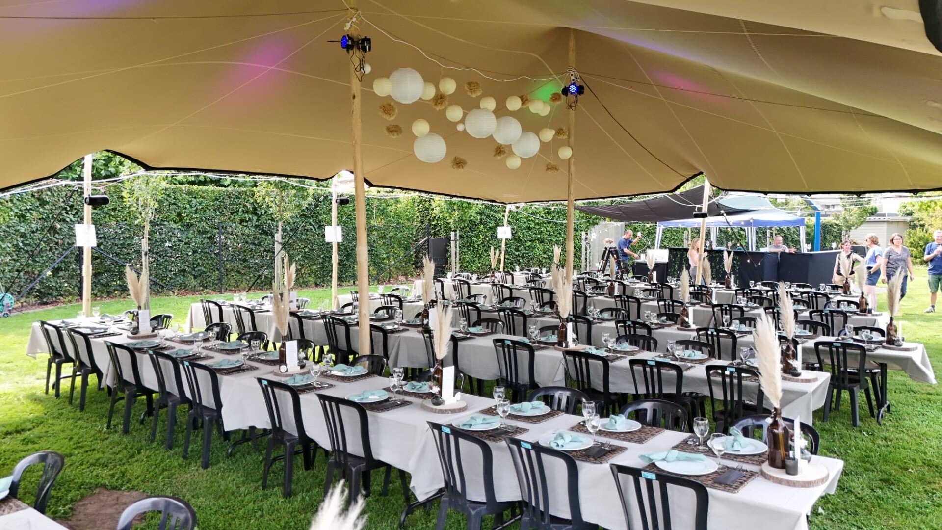 Leuk feestje gehad, met het huren van een tent, tafels, stoelen, bestek,… was het helemaal afgewerkt.