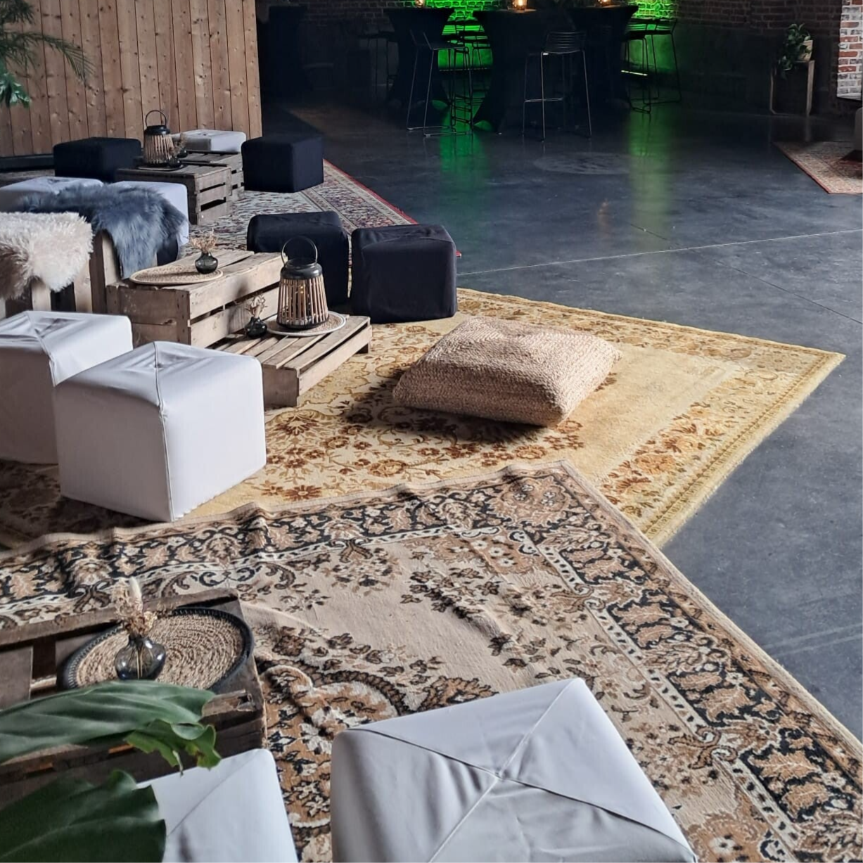 Van diverse comfortabele stoelen tot gezellige poefs, schapenvachten en tapijten — deze items zorgen voor zitcomfort én sfeer op elk feest.