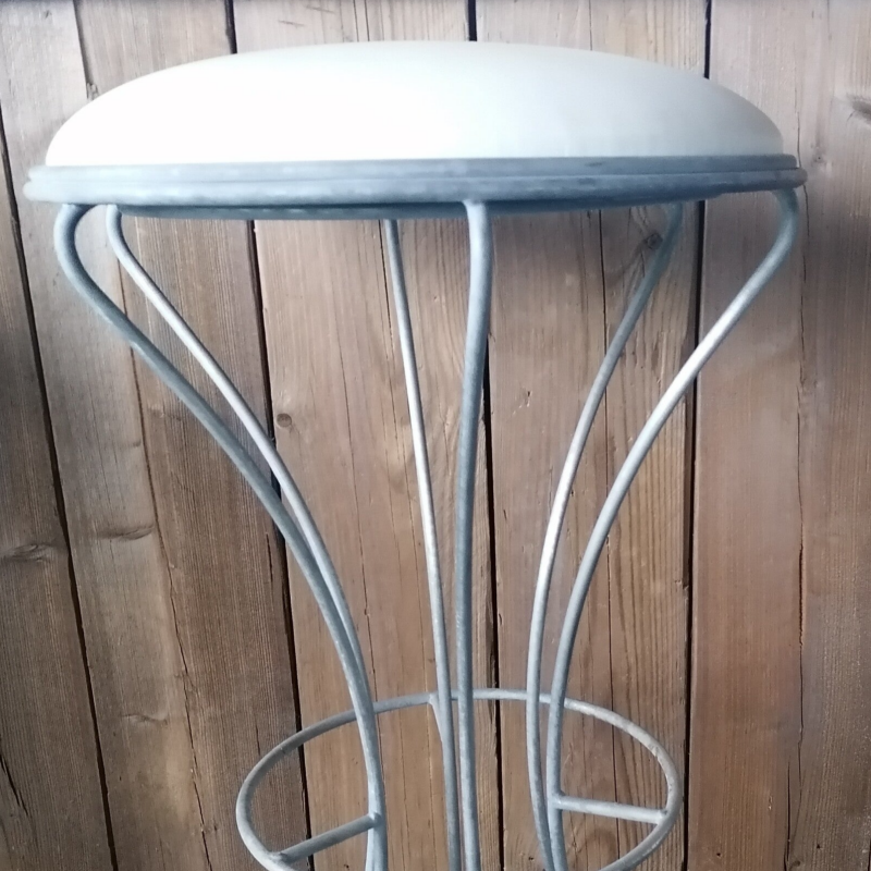 - Metalen frame en een gestoffeerde, ronde witte zitting.